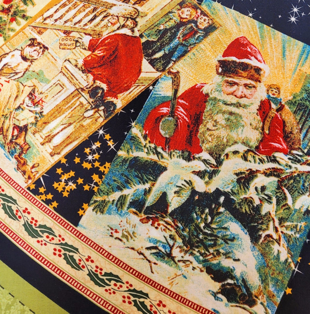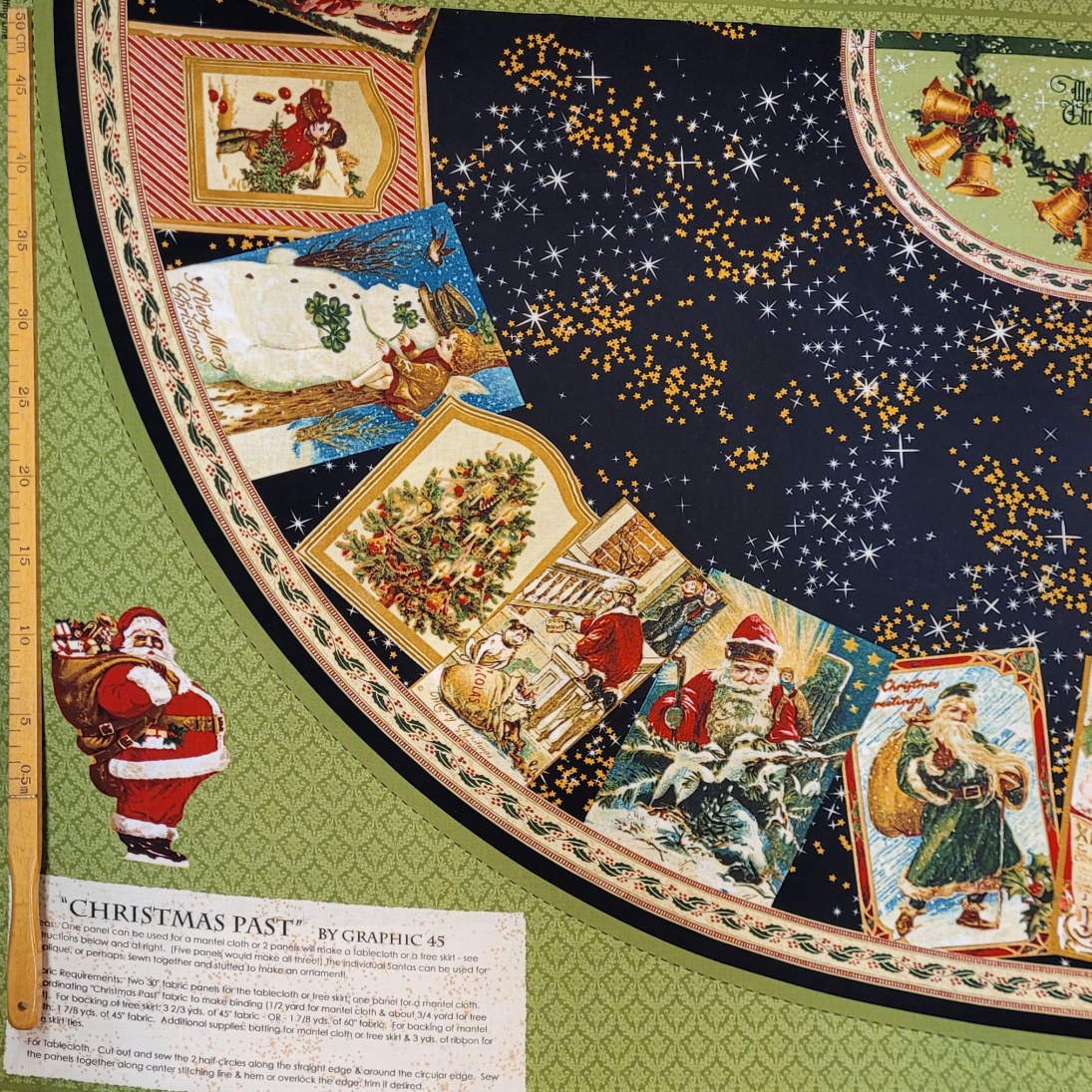 Joulukuusenmatto -kangas, vanhanajan joulukuvat, musta-vihreä iso paneeli (sisältää 2 puolipyöreää kuvaa) South Sea Imports