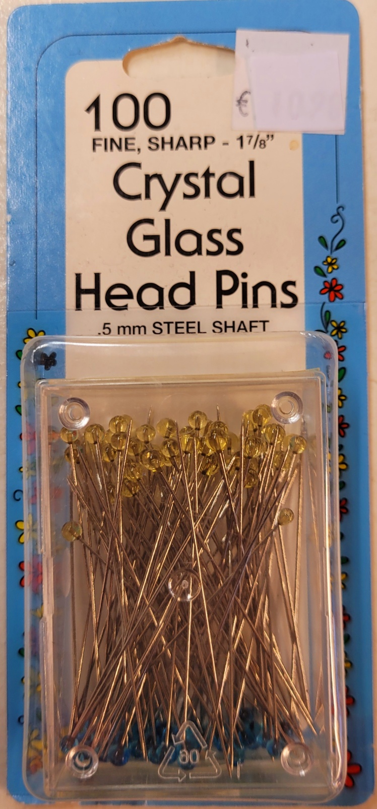 These very fine glass head pins with excellent, sharp tips glide right throuht fabric.